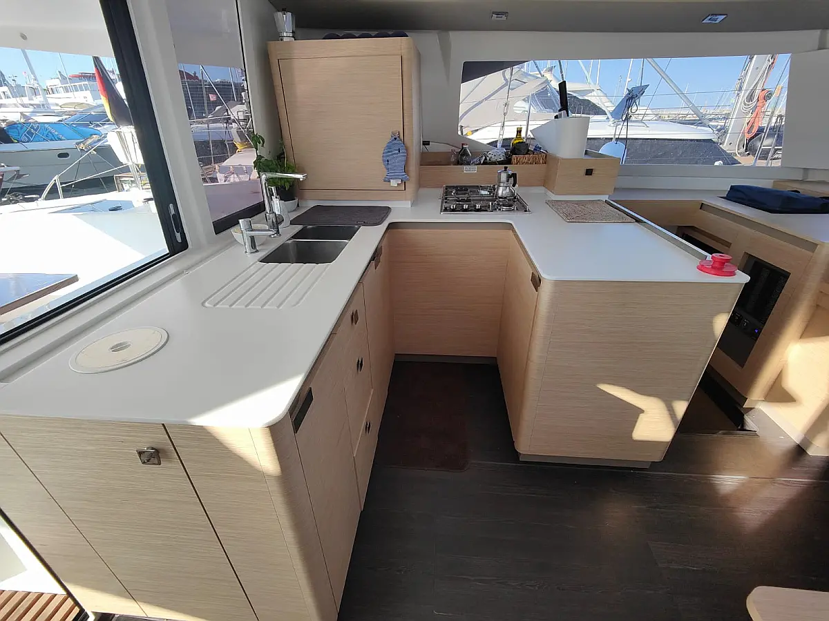 Tool kit, Engine oil, Essential spare parts, Sail repair kit, Inverter, Generator, Batteries (2x200 AH lithium)